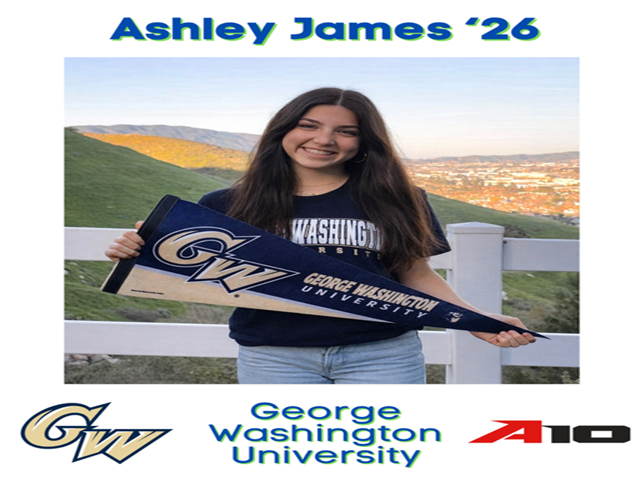 (Feb. 8, 2026) We are excited to announce that Ashley James will be heading to the East Coast to continue her education and play softball at George Washington University! Congratulations to the James family!