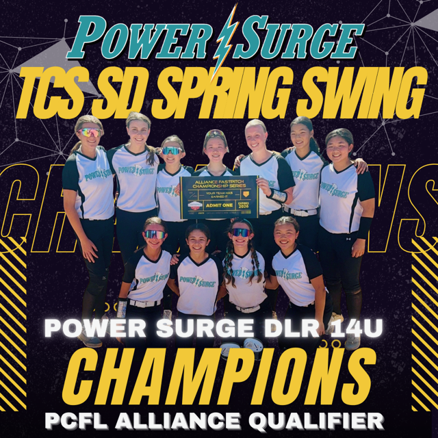 (March 4, 2026) Power Surge DLR punched their ticket to Alliance Championship Series this past weekend at the PCFL Spring Swing Qualifier! They went 5-0 to take the Championship in the 14U division. This is a big accomplishment for a first year team in travel ball!