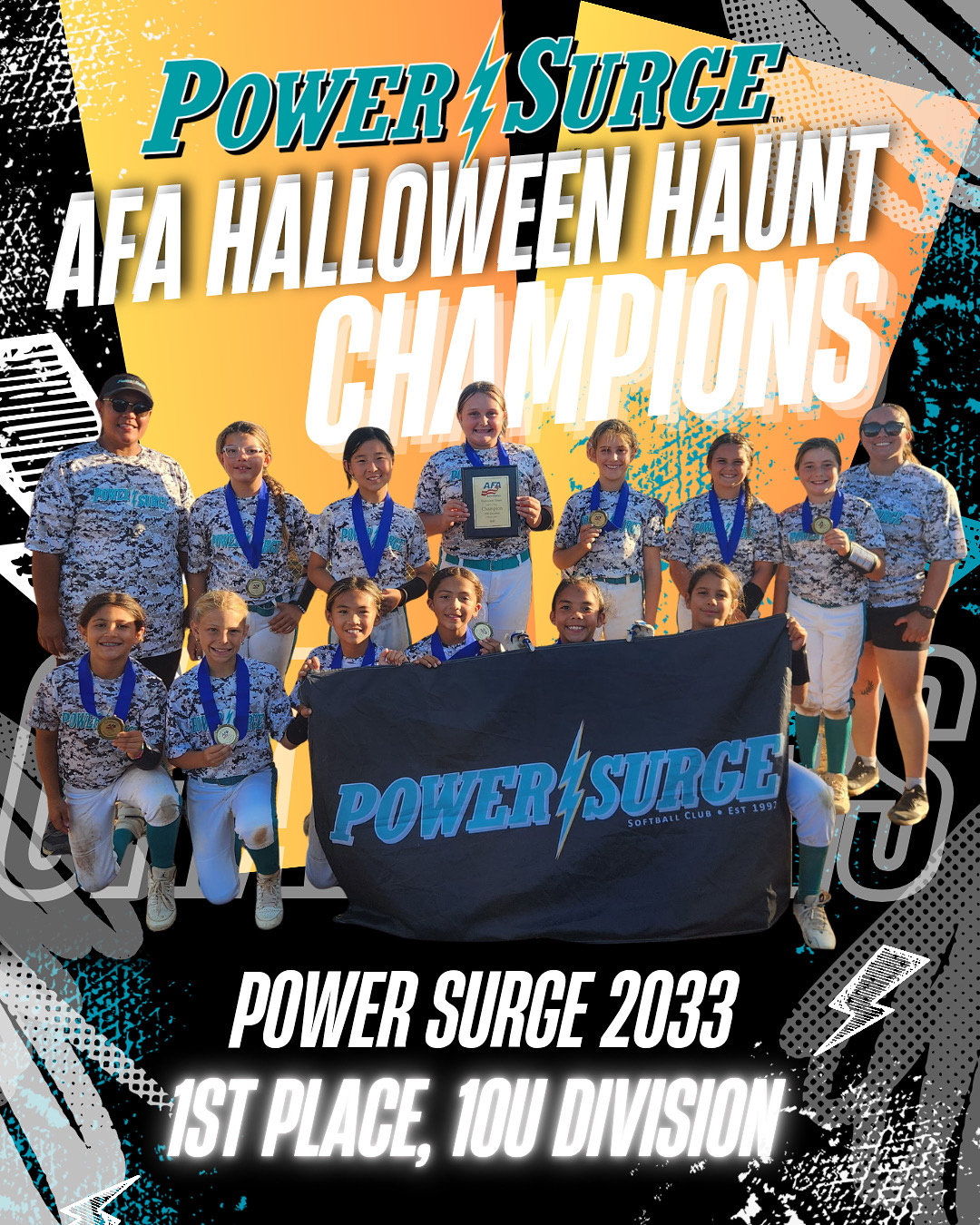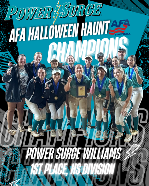(Oct. 16, 2025) Congrats to Coach Garcia and Power Surge 2033 for winning the 10U AFA Halloween Haunt National Qualifier this past weekend.